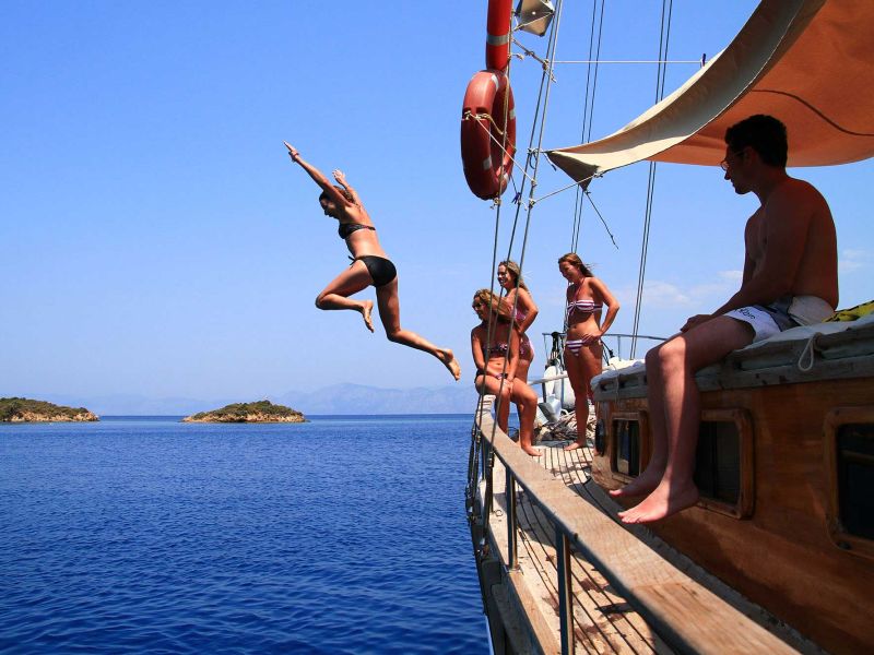 Was ist Kabinencharter? Kabinencharterboote mit mindestens 6-8 Kabinen und maximal 16 Kabinen auf der festgelegten blauen Kreuzfahrtroute, organisiert von Gulet Charteragenturen, durch Festlegung des Preises pro Person für die Kabine; Es handelt sich um einen Unterkunftsurlaub, bei dem die Verpflegung inbegriffen ist, wie es bei der Vollpension in Hotels der Fall ist. Die Hüttenmiete ist die gleiche wie bei einem Hotelurlaub; inklusive Frühstück, Mittagessen, Abendessen und 5 Teesorten; Es handelt sich um eine Vollpension mit zusätzlichen Getränken.