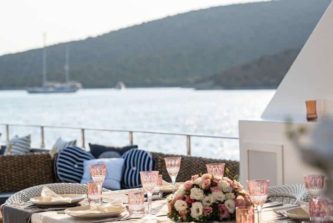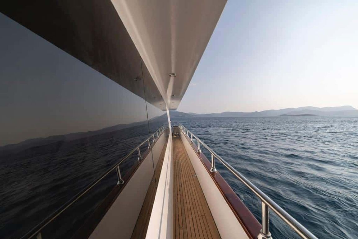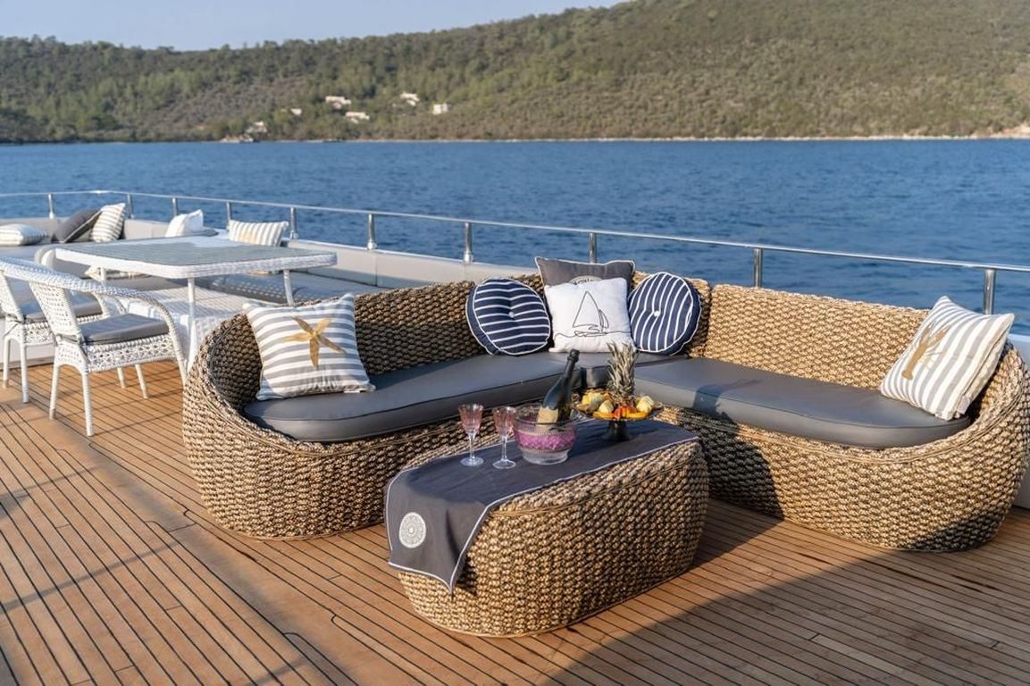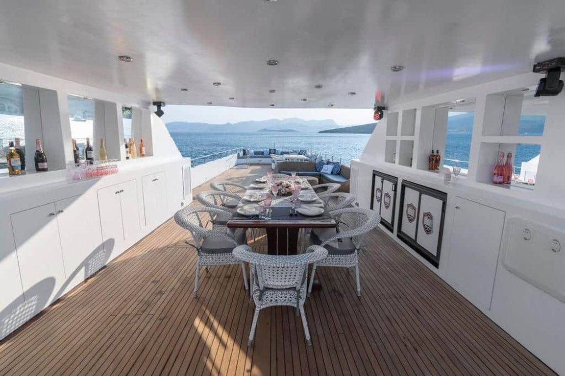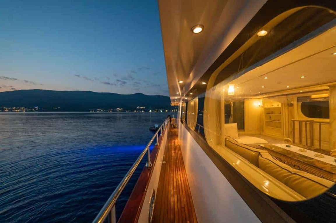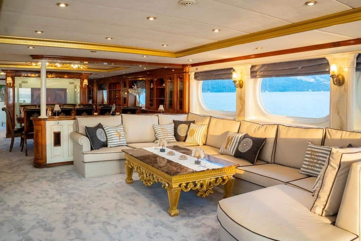 | Kapazität für bis zu 12 Gäste; 1 VIP-, 1 Master-, 1 Zweibett-, 2 Dreibettkabinen, Klimaanlage, Duschkabine und Heimtoiletten in allen Kabinen, separate Crew-Kabinen. |