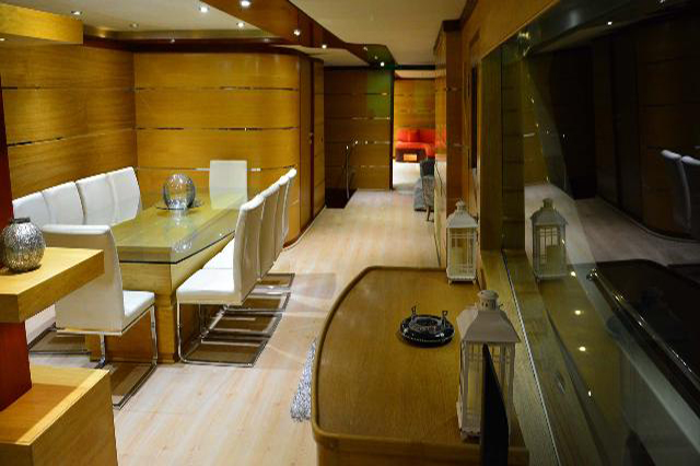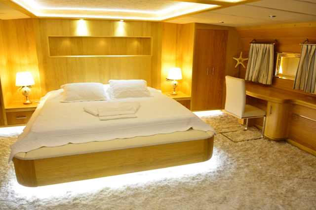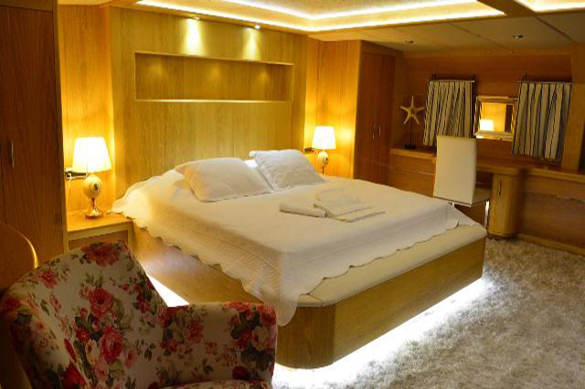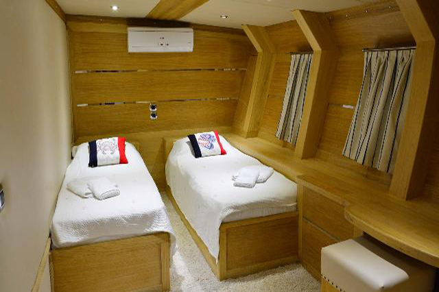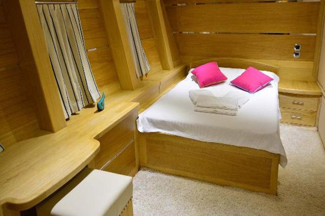 | 10 Gäste; 5 Kabinen; 1 Master-, 2 VIP-, 1 Doppel-, 1 Zweibettkabine mit Dusche und WC |
